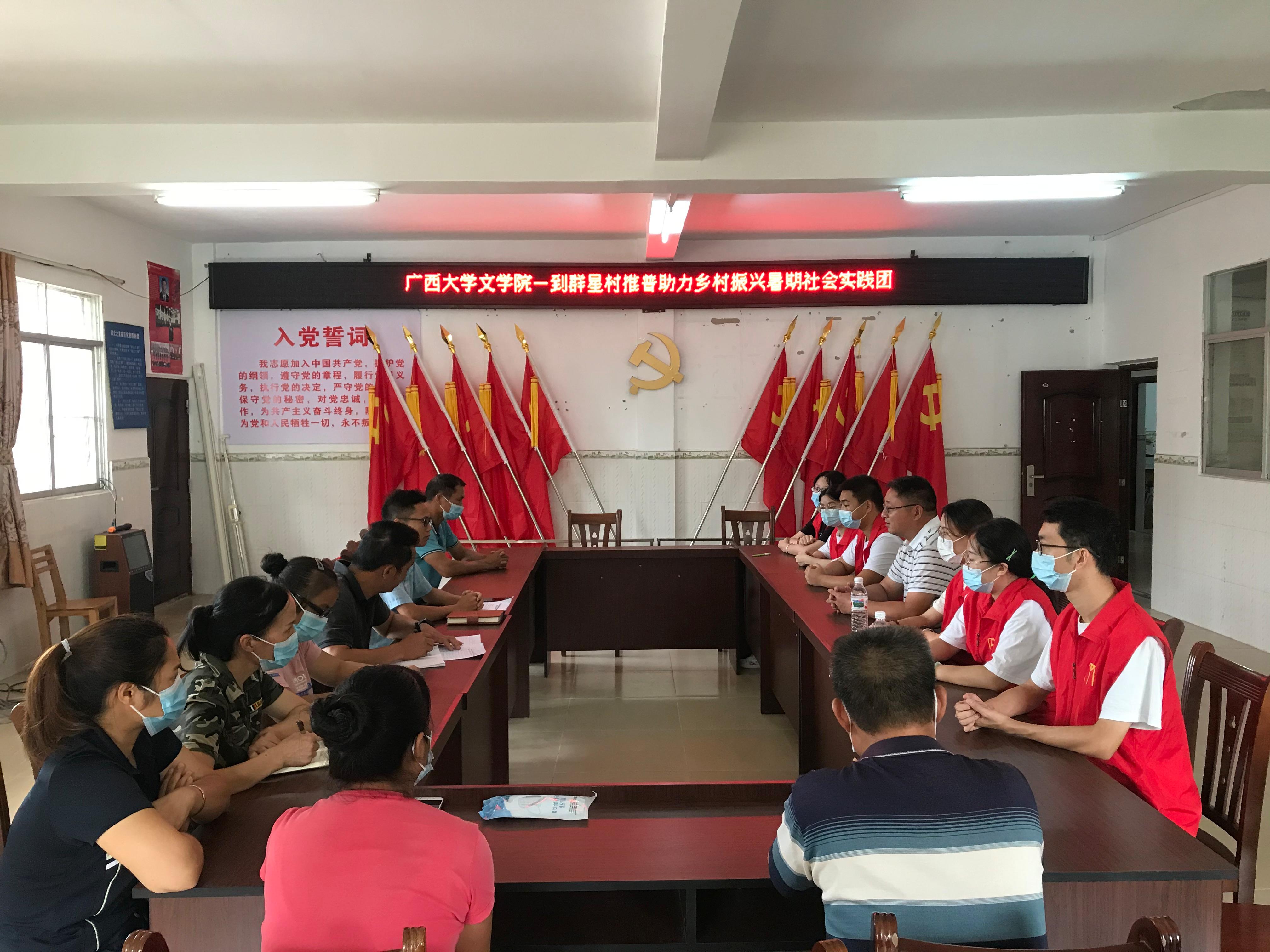 群星村村支书陆建治代表群星村村委会对威尼斯游戏中心暑期社会实践团队的到来表示热烈欢迎,热情地向老师和队员们介绍了当地通用语言的使用情况,对威尼斯游戏中心暑期社会实践团队助力乡村振兴发展表示衷心感谢。同时他表示全力支持暑期社会实践团完成推普助力乡村振兴工作。